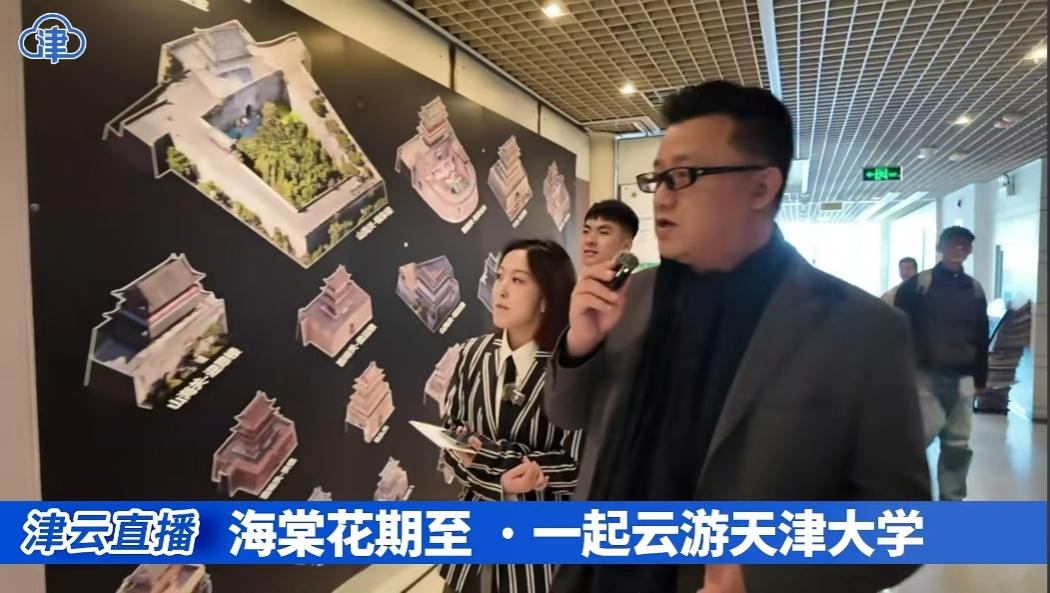 津云直播团队于当天上午12:00,通过《海棠花期至·一起云游天津大学》专题直播,将镜头对准展览现场。张昕楠作为主讲人,结合展陈内容,深入阐释了学院的育人理念与学科特色。张昕楠表示,通过此次参观,希望可以丰富大家对于建筑学的认识和印象。