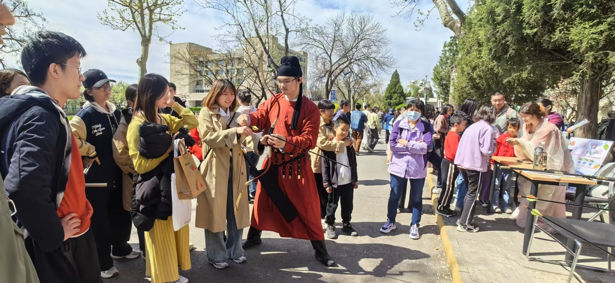 王学仲艺术研究所外,一场以“古今同赏乐海棠”为主题的沉浸式文化互动活动吸引了天大师生和校外游客的目光。百年学府文脉、古典文化知识与满园春色相结合,人流穿梭于海棠花影间,共赴一场跨越时空的文明对话。