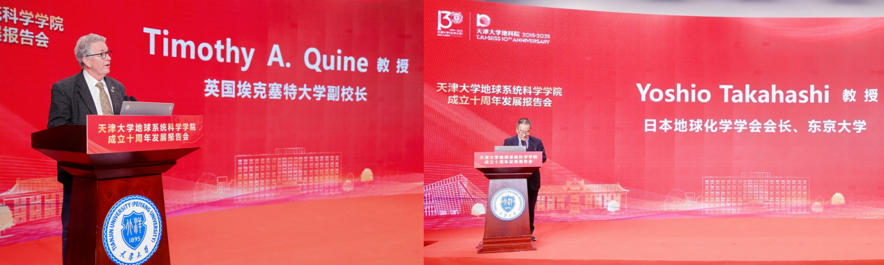 英国埃克塞特大学副校长Timothy A. Quine教授,日本地球化学学会会长、东京大学高桥嘉夫教授对学院的国际合作成果给予高度评价。Timothy教授在发言中指出,地科院在短短十年间,从无到有,迅速成长为国际地球系统科学领域的重要力量。他特别提到,学院在环渤海地区建立的国家野外科学观测研究站,为解决区域生态环境问题提供了重要数据支持。高桥教授则表示,学院的国际化视野和合作精神令人钦佩,未来东京大学愿与天津大学继续深化合作,共同应对全球环境挑战。