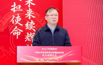 市委教育工委常务副书记、市教委主任荆洪阳在致辞中指出,天津大学成立合成生物与生物制造学院,是主动服务国家战略、推动高等教育内涵式发展的有力举措。他希望学院能够立足高远,充分依托天津大学的学科优势和科研实力,加强顶层设计,优化资源配置,构建跨学科协同创新机制,打造高素质师资队伍,培养面向未来科技发展需求的复合型人才,产出具有国际影响力的重大科研成果,引领我国合成生物与生物制造领域的发展。他表示,天津市教委将对新学院的建设发展给予全力指导和支持,推动学院为我国高等教育事业和经济社会发展做出新的更大贡献。