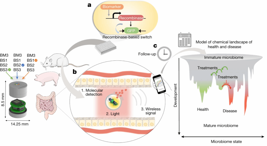 [2] An ingestible bacterial-electronic system to monitor gastrointestinal health. Science, 2018, 360: 915-918. https://doi.org/10.1126/science.aas9315