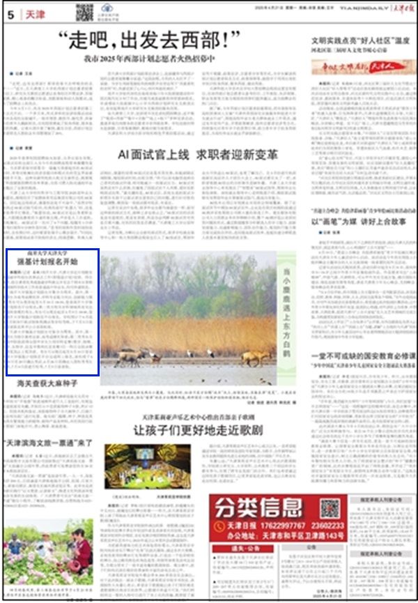 本报讯(记者 姜凝)南开大学、天津大学近日相继发布基础学科招生改革试点工作(即强基计划)安排。符合条件、综合素质优秀或基础学科拔尖并有志于将来从事相关领域科学技术工作的普通高中毕业生,均可申请报名。