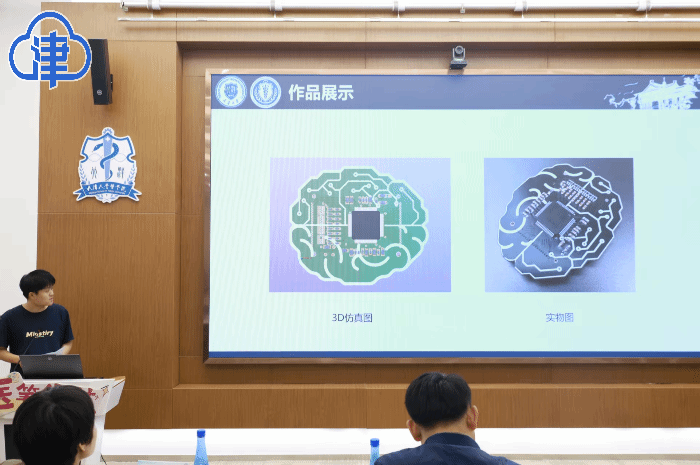现场作品风格多元,构思新颖,打破了传统解剖绘图对线条与比例的机械追求,转而融入数字艺术、立体构成等多种视觉语言。学生李均杨设计的“机械大脑”,用电路板重构人脑横截面,在冷峻科技与复杂结构之间实现契合;学生宋文珂则借助动态透视技术,让骨骼与肌肉在屏幕上层层展开,构建出结构与美感并存的解剖图景。这些作品不仅展现了学生的专业功底,更折射出天津大学“新医科”建设的创新思维。