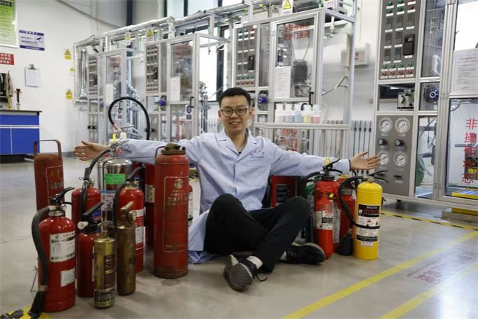 中宏网讯 在天津大学化工学院全国科普教育基地里,隐藏着一座小型的“消防博物馆”,100多具灭火器储存其中,它们产自中国、美国、日本、德国、马来西亚,颜色形态大小各异,从洁净气体灭火器,到干粉灭火器,再到水基灭火器,应有尽有,它们都是化工学院2024级硕士研究生宋大有的“私家珍藏”。