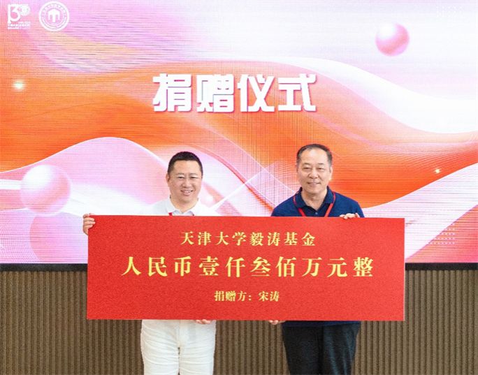 会上,数学学院1996级校友、米加集团创始人、董事长宋涛为母校捐赠“毅涛基金”1300万元,助力学校、学院事业发展。宋涛表示,在天大求学期间所学的数学知识,成为其日后从事相关工作的关键支撑与宝贵财富,作为校友,支持数学学院发展、助力学校“双一流”建设是义不容辞的职责。