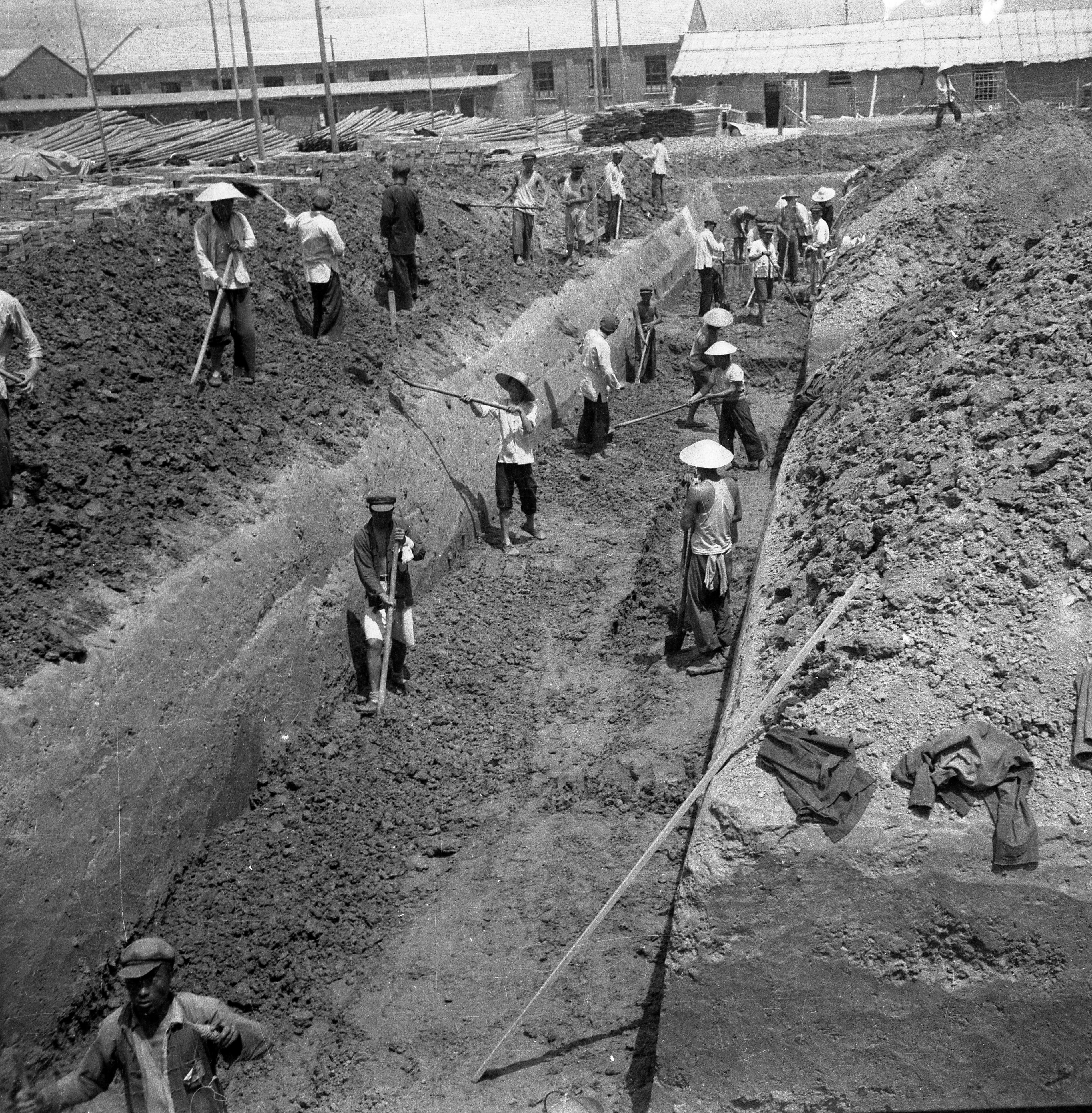 当时的第九教学楼前没有北洋广场,那里还是敬业湖的一部分。从一些老照片中,可以看到当时的九楼前的情景。为了增加部分陆地面积,我们从学校西面的大坑挖泥,填充了敬业湖的一部分。挖泥的地点大概在现在水利馆及以西的地带。因为泥比较多,我们弄来了小铁轨——类似煤矿用的那种铁轨——还有小车,从坑里运泥,也有人用挑子挑泥。大家干劲冲天,每天欢声笑语,还喊着号子,填上了部分敬业湖,修建了现在的北洋广场。学校10楼后面有一条小路,当时还是一条土路,一下雨就成了“水泥”路,泥泞难走。学校组织大家义务劳动,我们都参加了,按照比例搅拌好水泥,把这条小路变成了真正的“水泥”路。