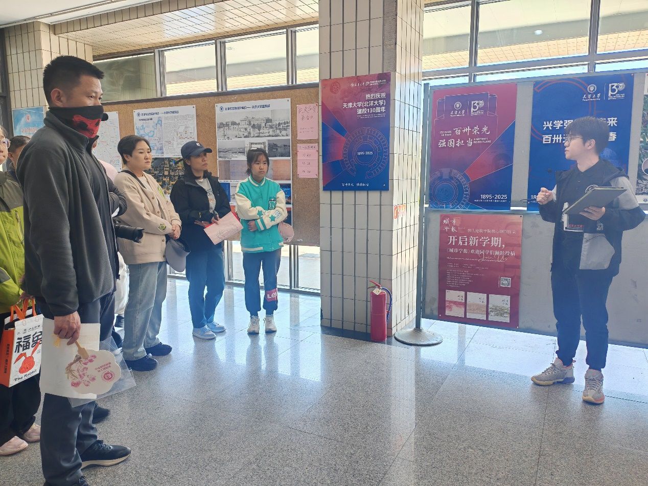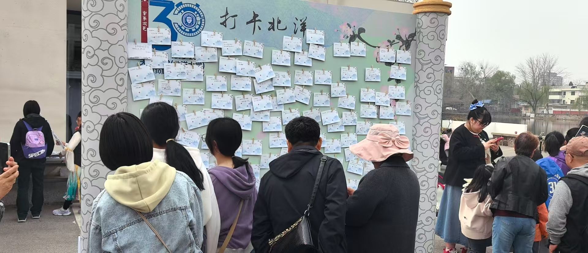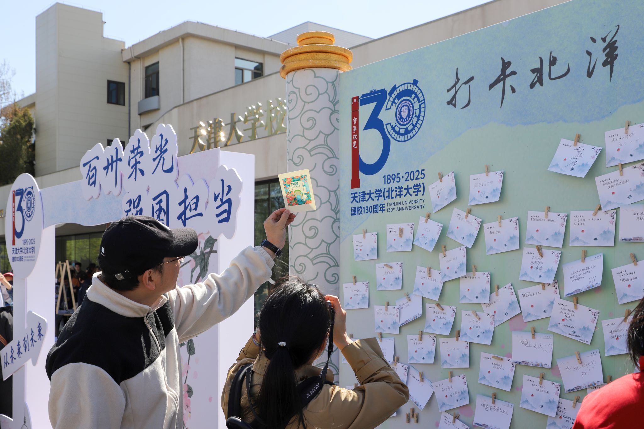 在卫津路校区,由宣传部、校友与基金事务处、宣怀学院主办的“海棠花开,打卡北洋”活动以影像定格百卅祝福。校友之家前,校友与游客在定制相框前合影留念,祝福墙上写满对天大的殷殷期盼;中国科学院院士刘丛强、89岁老校友等深情寄语,现场打印的合影与文创书《丹青打卡北洋》成为珍藏记忆。