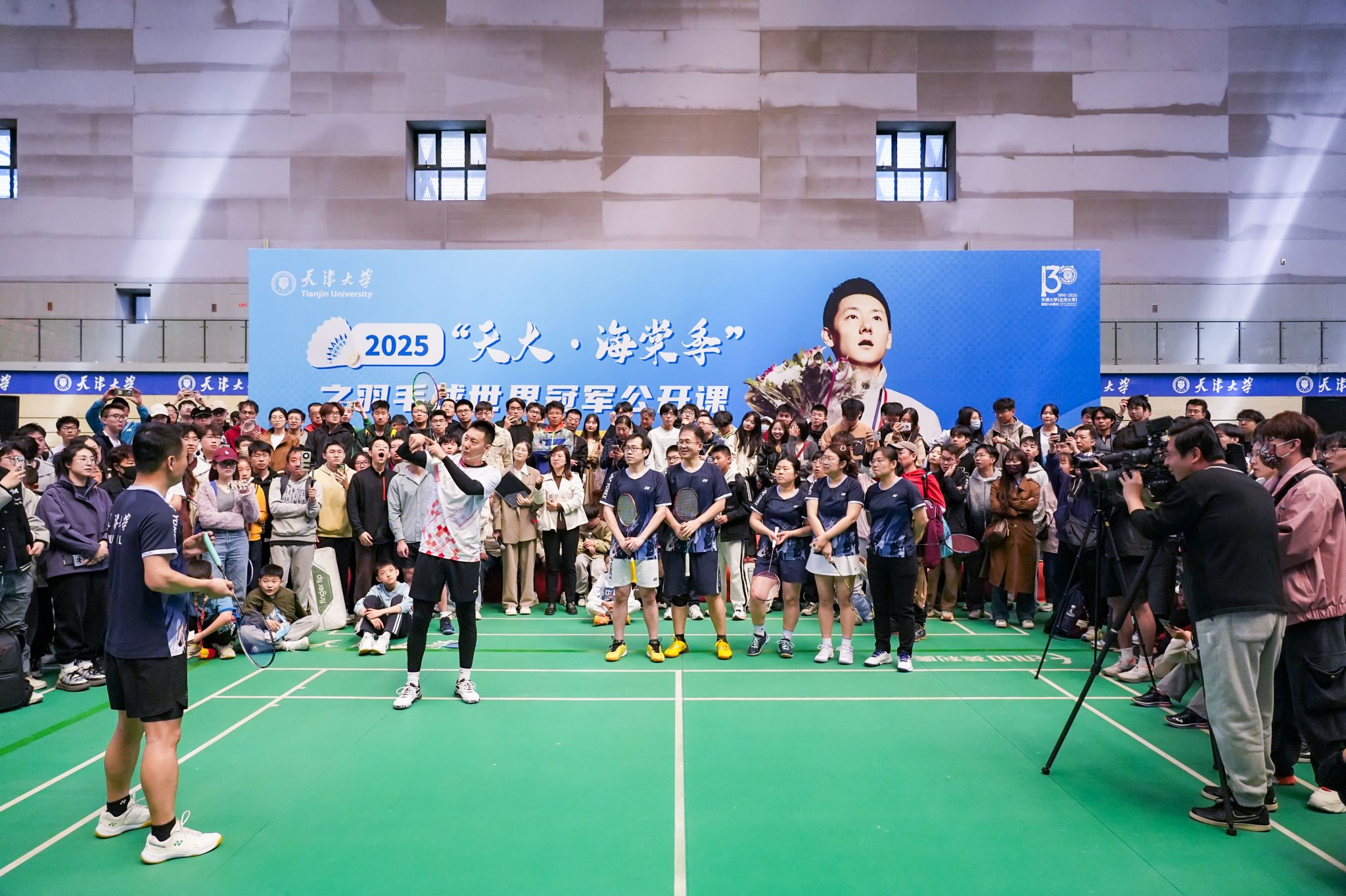 世界冠军公开课掀起“羽”林热潮。羽毛球世界冠军陈金亲临体育馆,与师生开展表演赛并传授接发球和杀球技术,手把手指导实战技巧,现场互动点燃运动激情,以拼搏精神为校庆注入青春活力。
