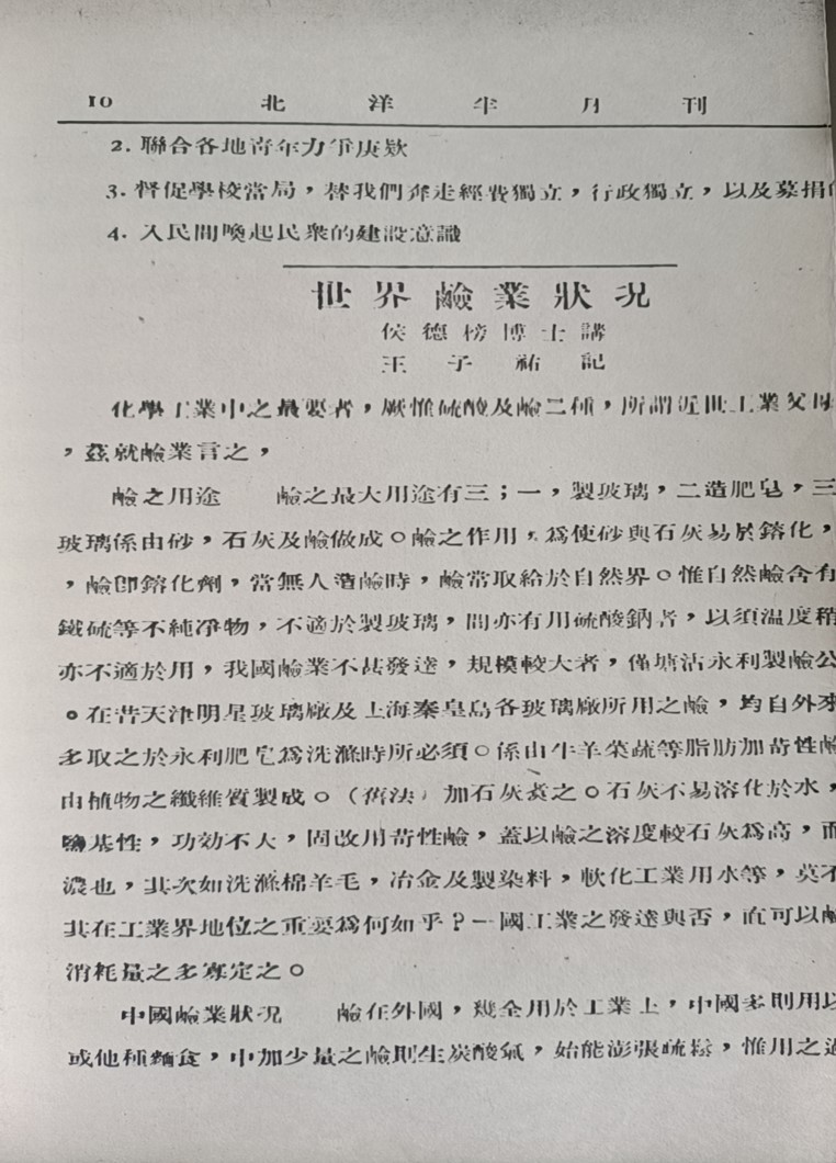 1930s世界碱业现状-侯德榜来校讲座内容